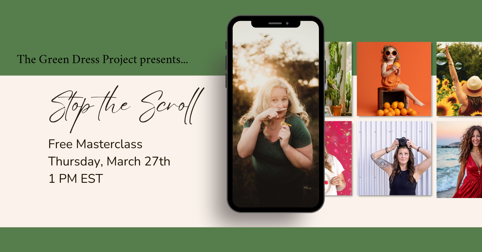 Join successful multi-business owner & pro photographer Jackie Baughman for this FREE online event, where you’ll learn how to STOP THE SCROLL, grab attention, and turn casual scrollers into eager buyers!